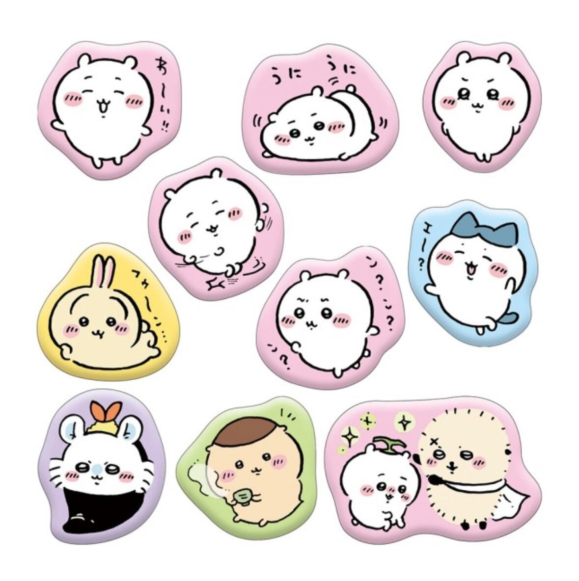 ちいかわたちがぷっくりふわふわな感触のマシュマロのようなシールになります。